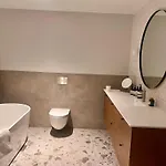 O The Wooden House, Spacious, Garden, New And Modern oferece local de descanso, bem como confortos como controle de temperatura. Neste apartamento, casa de banho separada e chuveiro são fornecidos para aumentar o seu conforto. Secador de cabelo, lençóis de banho e toalhas também podem ser encontrados.